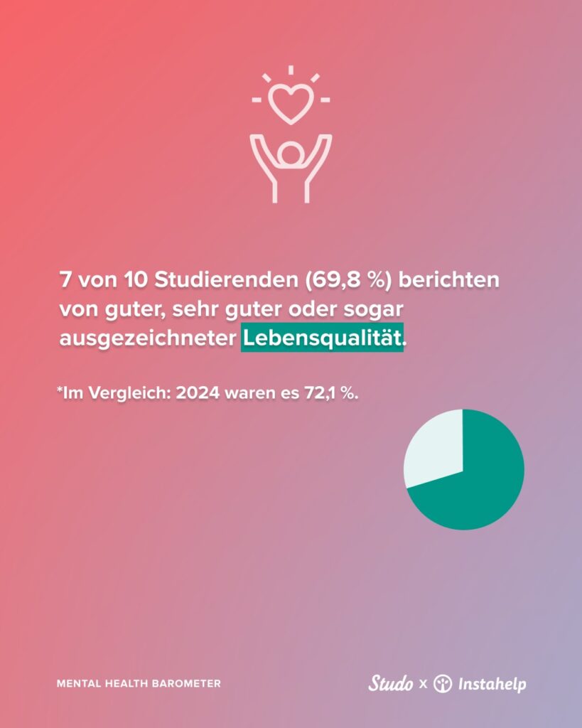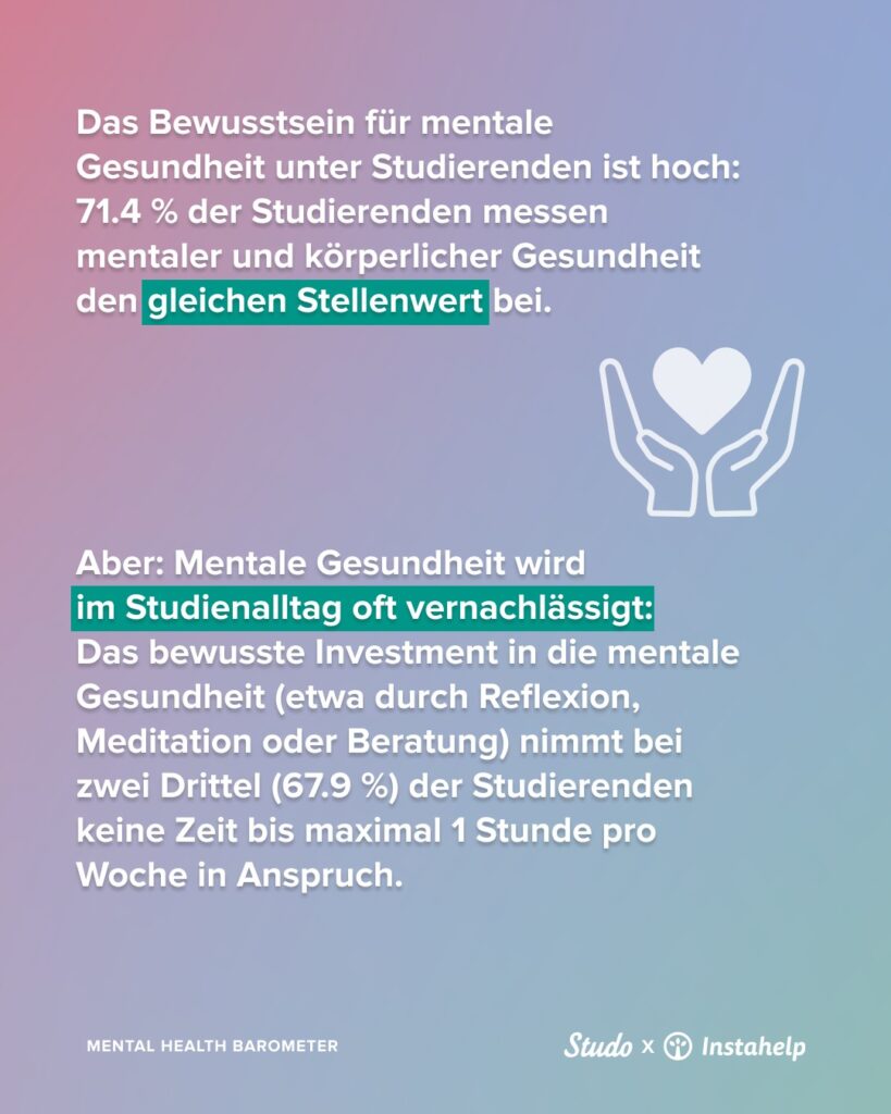 Das Mental-Health-Barometer von Instahelp und Studo wird seit 2021 jährlich unter Studierenden in Österreich und Deutschland durchgeführt. Ziel ist es, die Entwicklung des mentalen Gesundheitszustands von Studierenden sichtbar zu machen und Entscheidungsträgern in Bildung, Gesundheit und Politik fundierte Daten für Maßnahmen zur Förderung psychischer Gesundheit bereitzustellen. Die fünfte Erhebung wurde im Herbst 2025 unter 6080 Studierenden online durchgeführt.